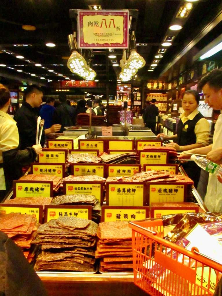 A Macau favorite! This dried meat can be sampled for free by the sales reps lining the street on your way to see Sao Paolo. The taste of bakkwa is salty and sweet its made from pork and is very similar to a thick piece of jerky