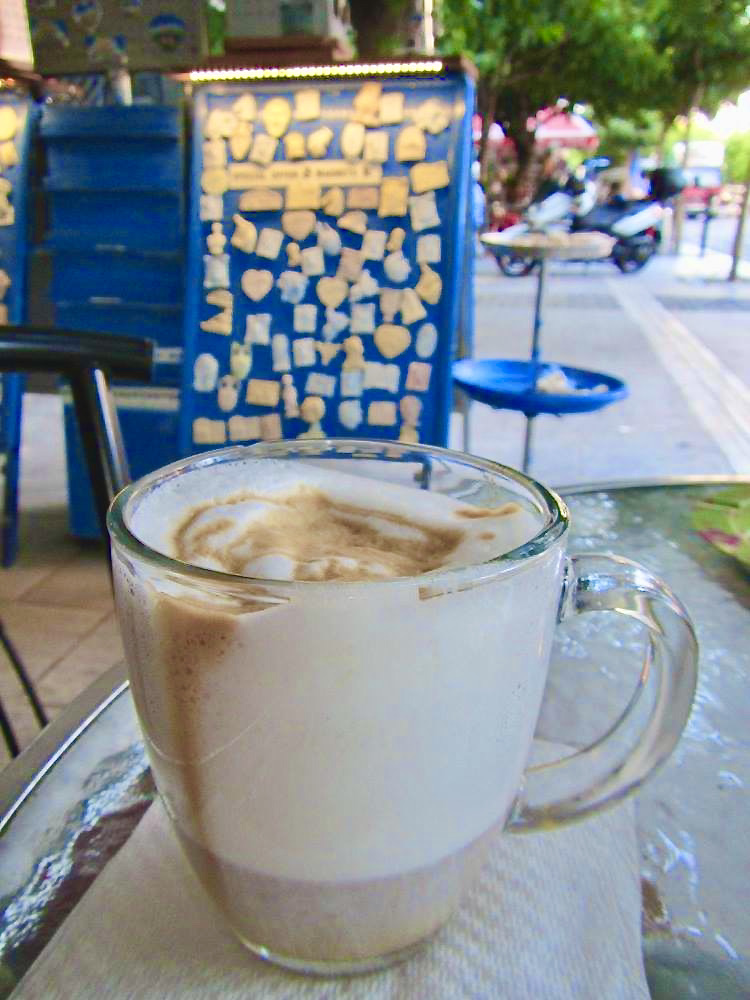 A Freddo Cappuccino is a greek specialty made by mixing crushed ice, a shot of Espresso and sugar until it becomes light and frothy.