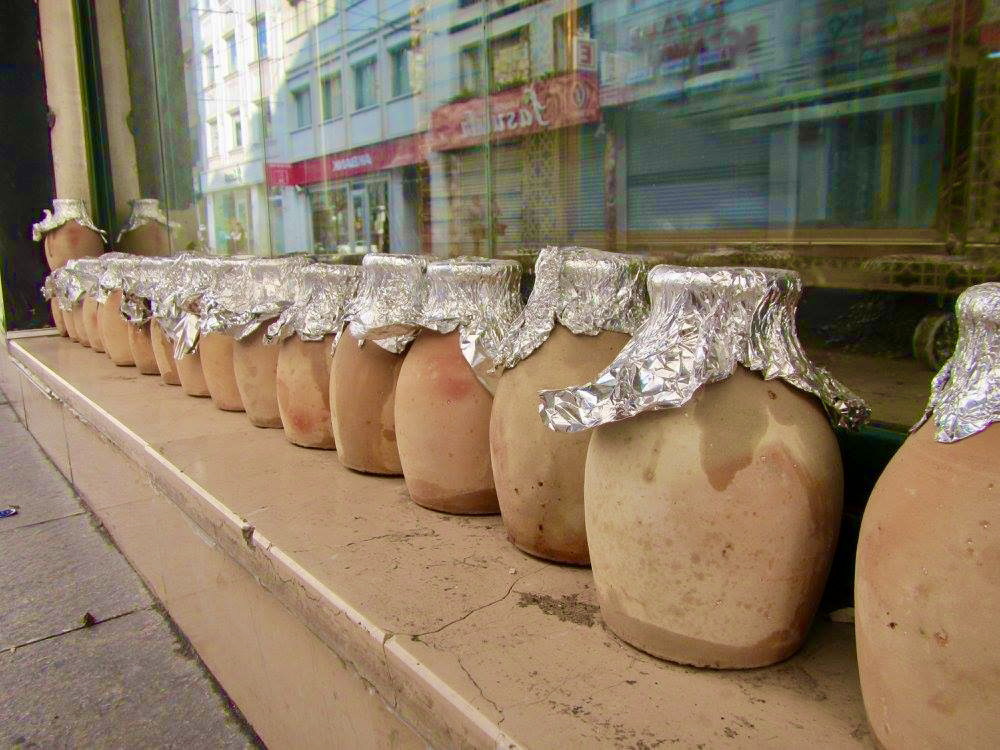 A tasty spectacle and must-try for visitors to Istanbul. These pots are filled with a meat (lamb, beef, or chicken), vegetables such as celery, onions, carrots, garlic, bell peppers, and potatoes and simmer with spices and herbs. They are slow baked in a clay oven for hours and its traditional to sealed the clay pot with a with a bread dough lid. The piping hot pot is brought out to drooling guests either spilled and arranged on a platter, sealed in the pot for you to open or cracked open (table side) on a platter in a theatrical manner.