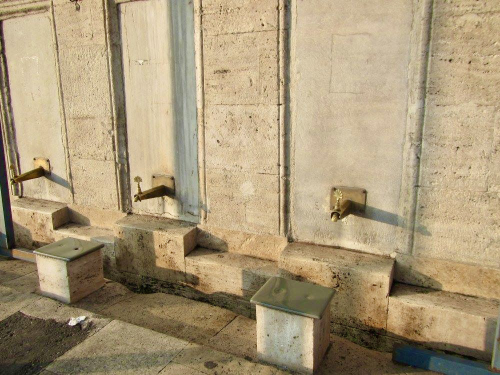 Wudu or Ablution water tap area. This is a place for practitioners to wash their hands and feet before entering the mosque.