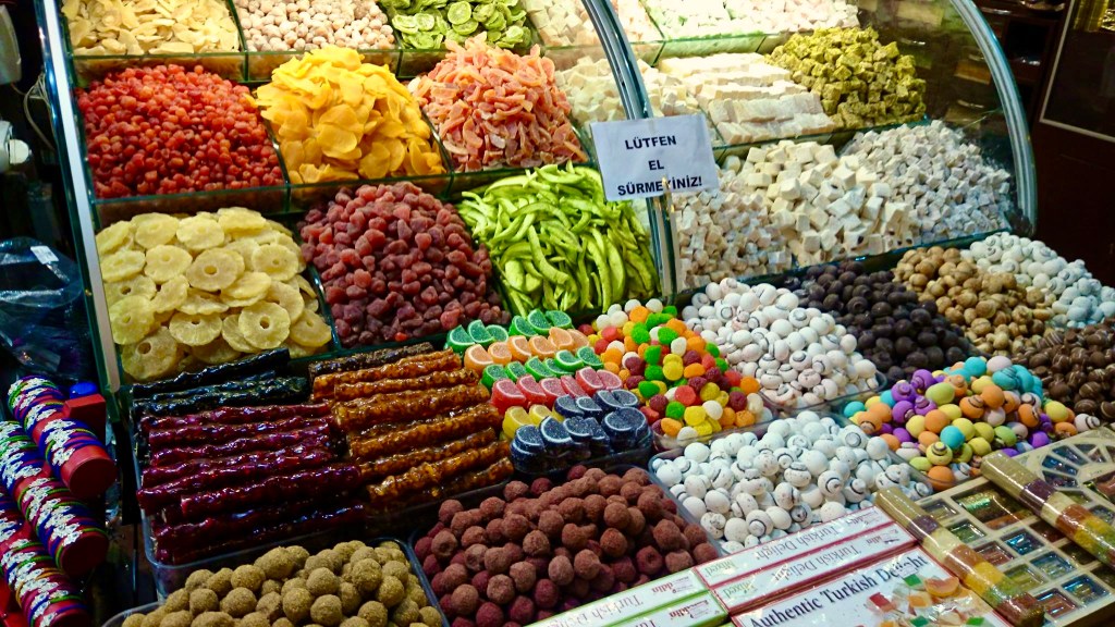 A must is Istanbul is trying the Turkish delights (also called lokum) they are jellied confection. You can also find, dried fruits and berries and undress of fascinating candies in the markets. Turkish delights are one of the oldest sweet still being made today and have been around for 500 years.