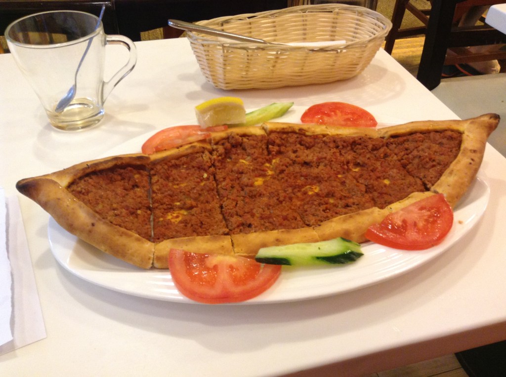 Lahmacun or Turkish Pizza is made with a Middle Eastern flatbread as the crust and can be topped with meat, minced vegetables, onions, garlic, tomatoes, red peppers, and is sprinkled with chili, pepper, parsley, paprika, or lemon. They can sometimes have greek yogurt or ricotta cheese and are baked until extra crispy. Eaten at dinner or lunch, you’ll want seconds!