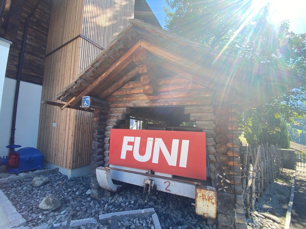 The Funi sled drove the footpath above the mainstream of Dorfstrasse. The route was about 400 meters long and the journey took 2 minutes and 15 seconds. It opened in the winter of 1938 and ran until the 1990s.
