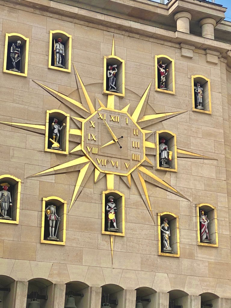 A time piece fort the ages, this stunning clock can be found in Le Mont des Arts. The clock displays 12 characters in its niches: a drumer, soldier, workman, the Gaul, Godfrey of Bouillon, Jean-Joseph Charlier, a Gunner ( from the Belgian Revolution), Jacob van Artevelde, 14th century leader, Count of Egmont, Peter Paul Rubens, Emperor Charles V, warrior with scimitar (stolen and reinstated) and Philip the Good.
