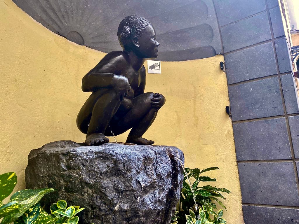 This little 20 inch tall bronze girl statue is a modern 1980s restoration of the equality between men and women as the feminine counterpart to the old Manneken Pis.