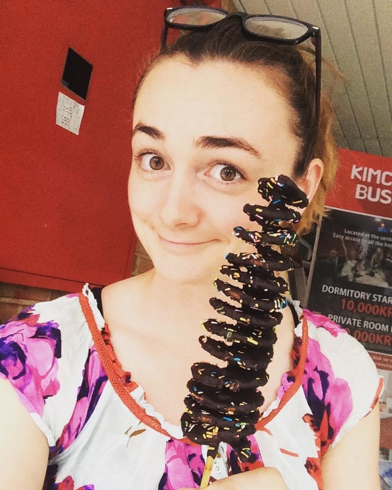 Korea is known for inventive, whacky and unusual foods. Pop into a supermarket, mini mart or street market and try something fun. I found a tornado cut spiral potato chip that was dipped in chocolate and covered in sprinkles!