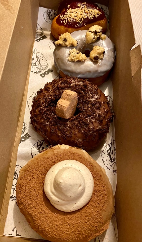 Better than Voodoo, I promise and almost no line. They are all vegan. Try the tiramisu it’s filled, has a coffee glaze and covered in cocoa powder. They have unusual flavors and seasonal unique pairings. At the end of the day selection is small, so go early. $3-4 each.