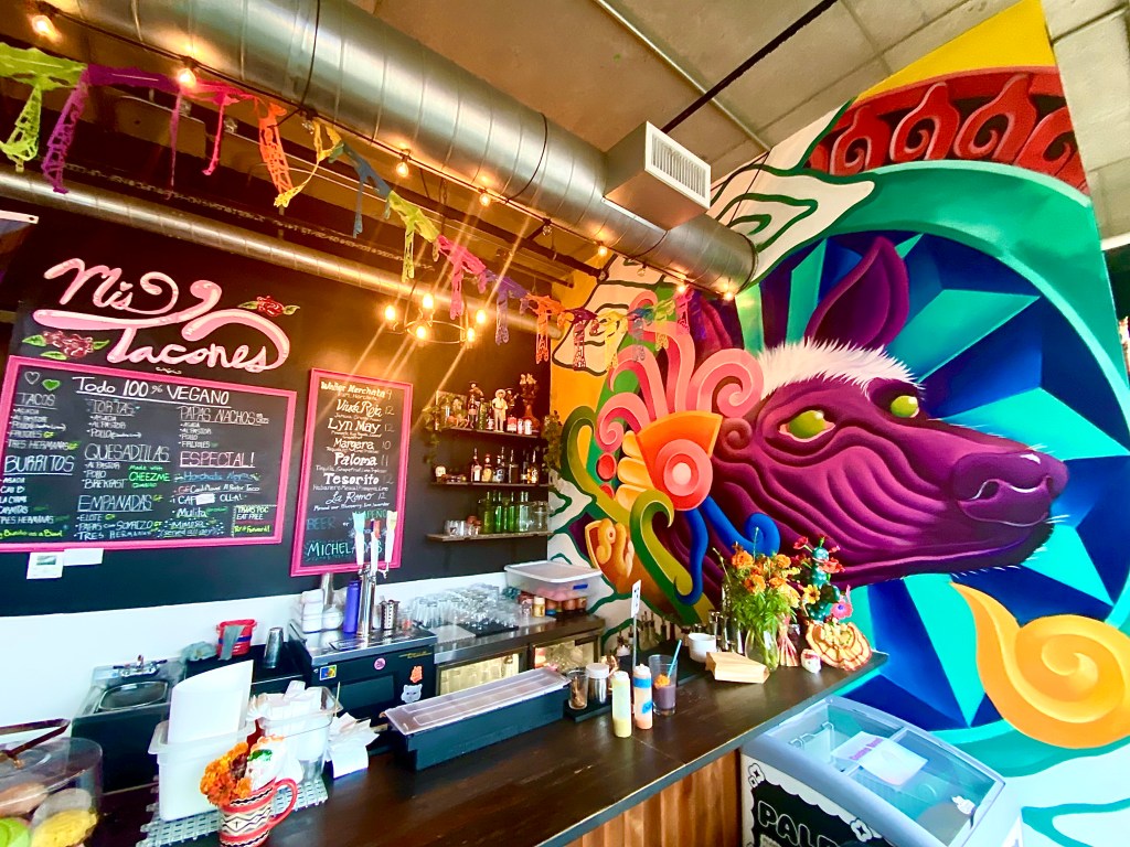 Vegan tacos with a colorful flair. Trans friendly and full of Art, color and fun.