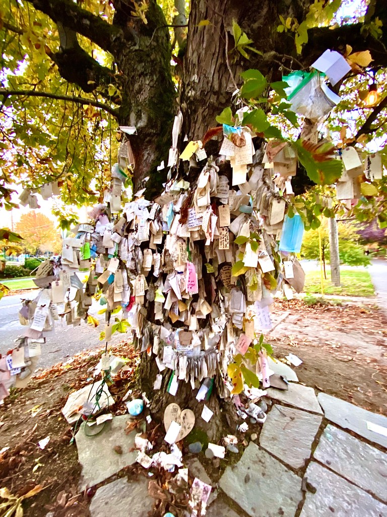 A oddity unique to Portland this stunning old growth horse chestnut tree is covered in wishes. Its located on Northeast Morris Street and 7th Avenue and has been granting wishes since 2013.