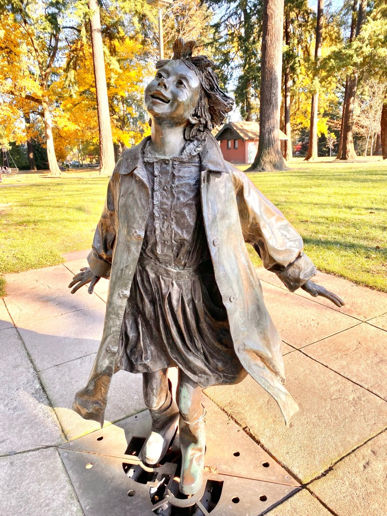 A charming bronze statue and fountain for the beloved Beverly Cleary’s characters Ramona, Henry and Ribsy the dog. These statues sit in Grant Park, near the Beverly Cleary School. The fictional literary character Ramona lived and adventured in Portland.