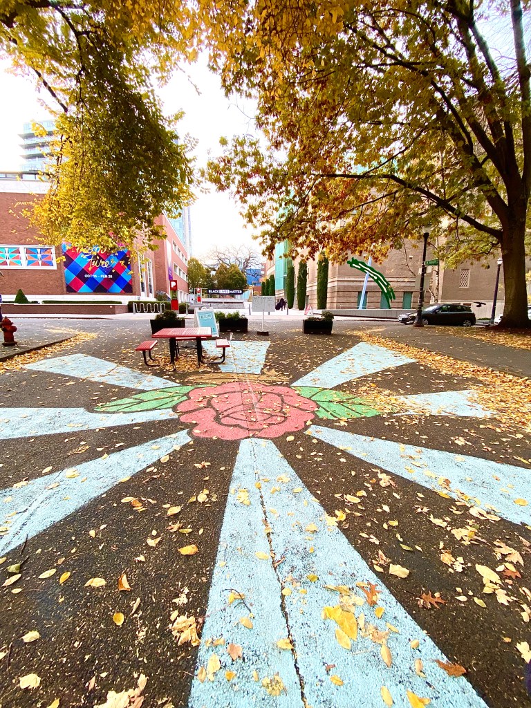 The worlds smallest park. Sometimes its decorated, sometime its not. You can find it in the median strip of SW Naito Parkway and SW Taylor Street. It holds the Guinness world record for world’s smallest park with a total area of 452 square inches.