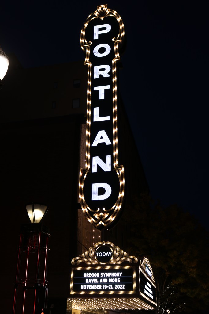 One of two famed signs that represent Portland. This vertical beauty is in front of the Arlene Schnitzer Concert Hall.