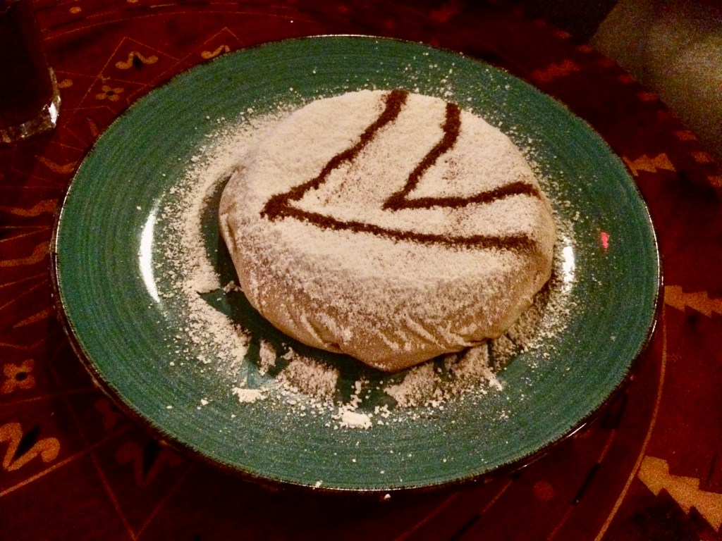 Amazing 5 course meal inside a cozy bohemian oasis. The interior is lavishly decorated and adorned with beautiful Moroccan tapestries, tassels and silver carved ornamentation. $25-30 per person for a 5 course meal. You may also see belly dancers jingling about the place. They are humorous, sweet and a cute extension of the ambiance.