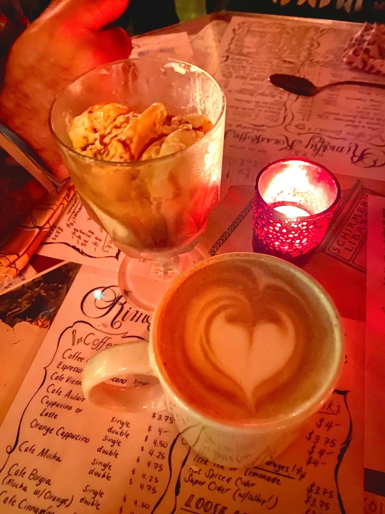 *Cash Only* A staple for lovers of the unique and quirky this victorian music theme coffee and desert restaurant targets the night owls, open 7 pm-midnight Wed.-Sunday. Report of this location being haunted are frequent. The upstairs bathroom is famed for its wildly odd under-the-lake theme including a ceiling mural and a full size kayak.