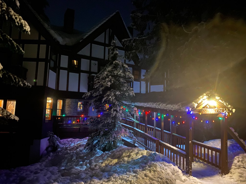 1930s wood carved lodge is the most magical place to curl up with a book, cut of hot chocolate and watch the snow fall on Mt Hood.