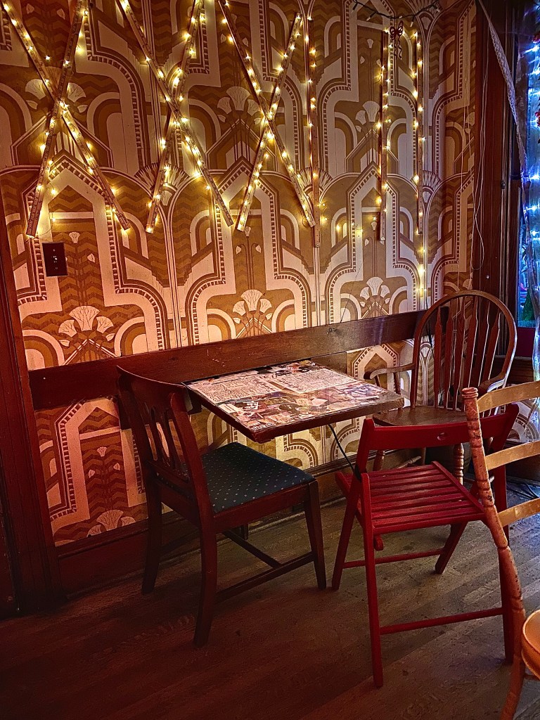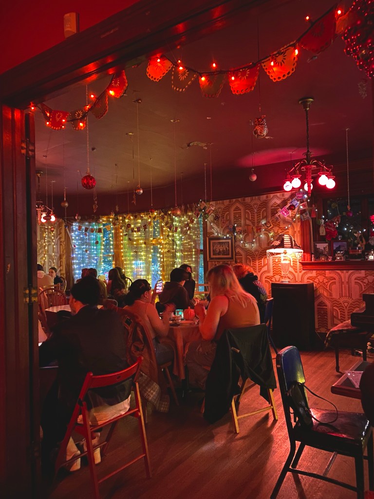 The owners of the coffee house are committed to preserving its artistic and cultural legacy. Make sure to check out the beautifully has lettered menus, artistic staircase collage, quarky underwater theme bathroom and cross your finger your not seated at the trick table. Which might dissapear at any moment!