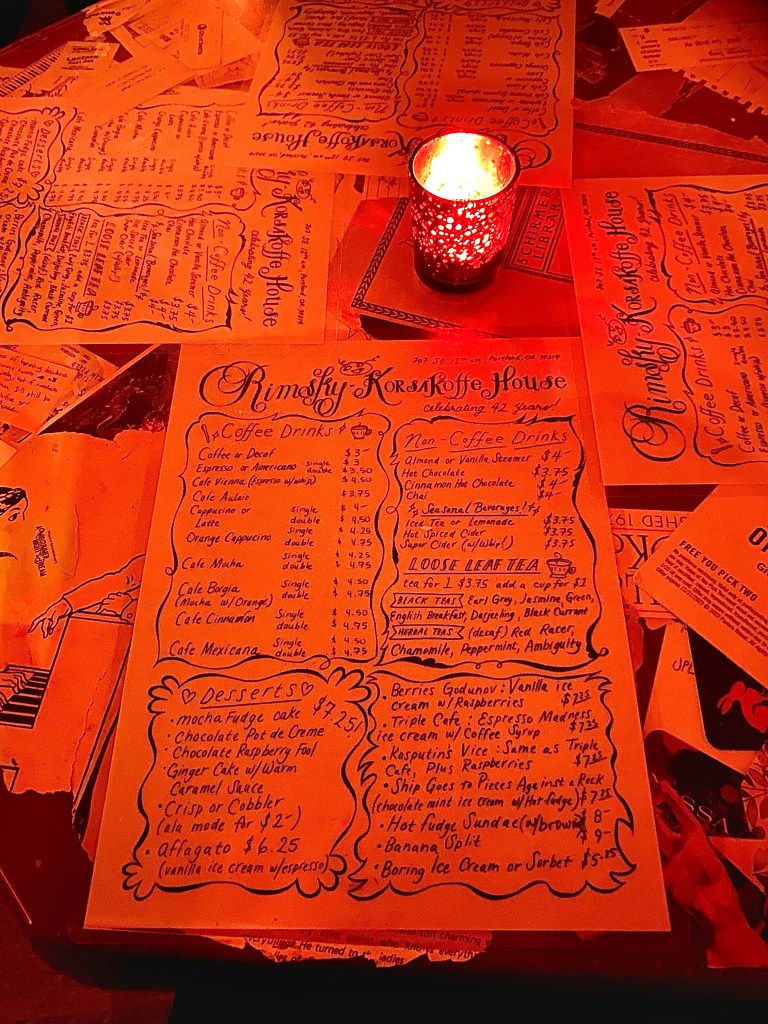 The coffee house was originally name after the famed Russian immigrant and musician, Nikolai Rimsky-Korsakov. Rimsky-Korsakov was a skilled composer and musician, and deserved to have a quarky coffee house names in his honor. The coffee house evolved into a quarky and an beloved late might venue that brings together artists and musicians in a relaxed and informal setting.