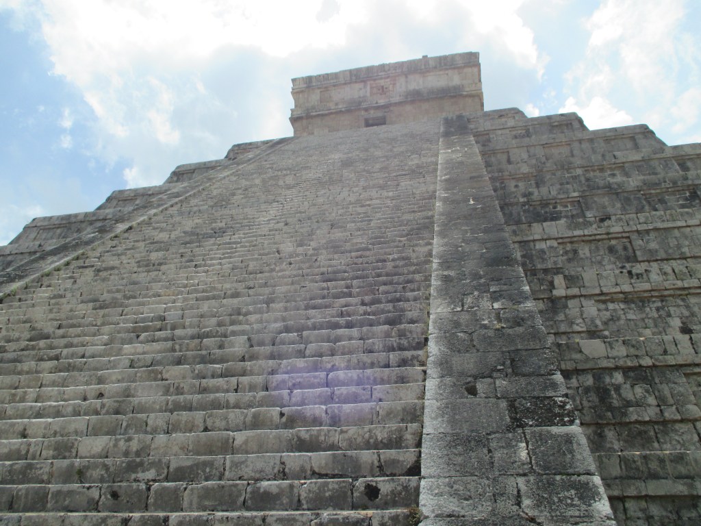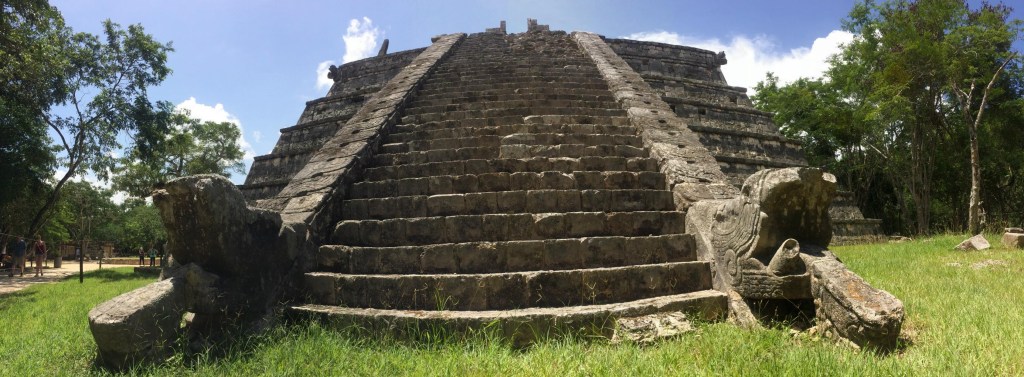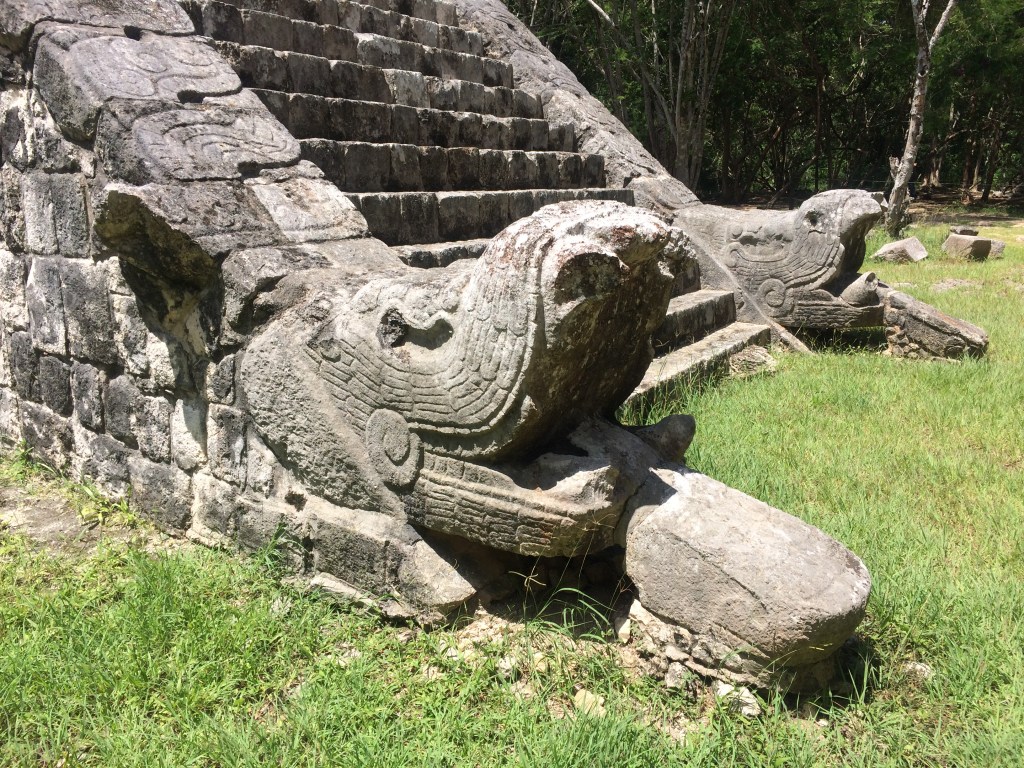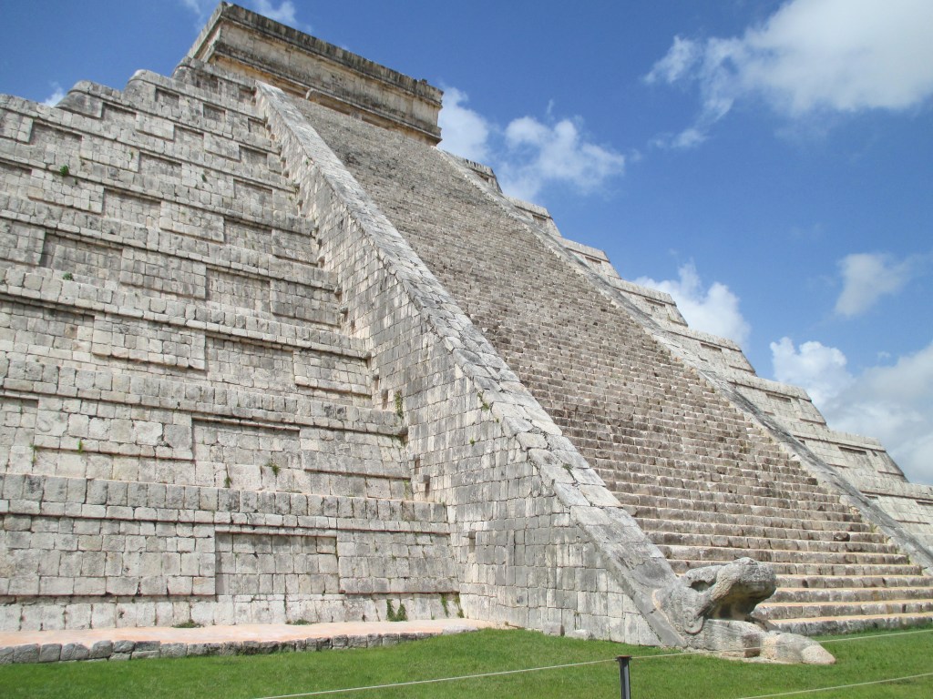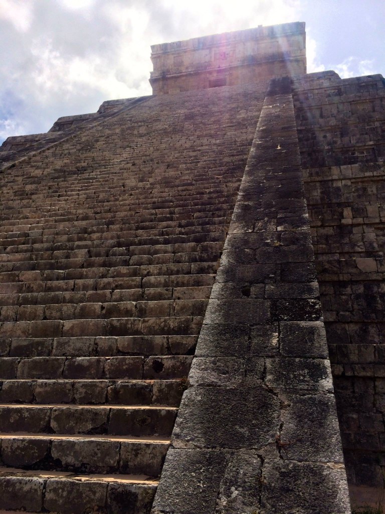 Funky Fact: The Serpent God, Kukulkan visits the pyramid 2 times every year. The shadows from the tiered edges align perfectly along the wall and match the serpents head at the base of the pyramid, making a snake head with zig-zag curved tail all the way to the top.