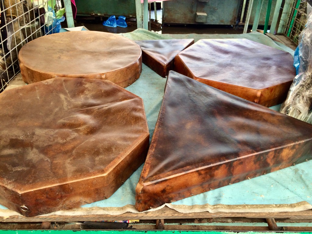 Wandering further into the market, I was drawn to a stall selling trinkets and leather crafts such as hide drums. I can’t help but admire the intricate patterns and designs on these beautiful instruments.