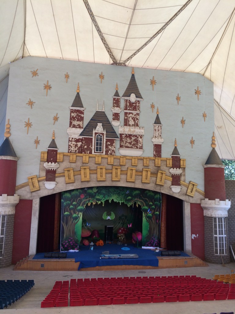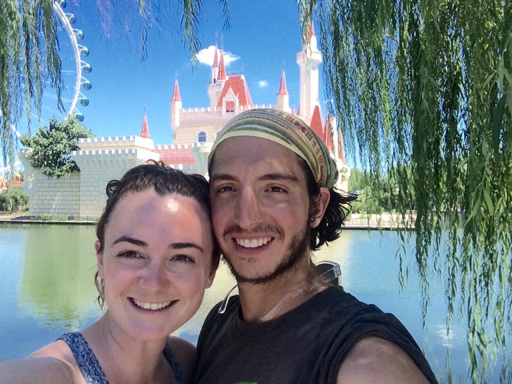 Many parts of the park are blocked off and under repair. Behind us is the replica Disney Castle that was blocked off during out visit for repainting. It looked great from far away but was in much need of some TLC.