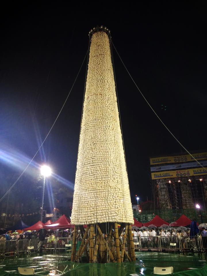 A 60-foot tower covered in thousands of buns. This Festival takes place on Cheung Chau island in Hong Kong SAR. The festival activities include a relay race where competitors climb to the top and collect as many buns as possible for their team.