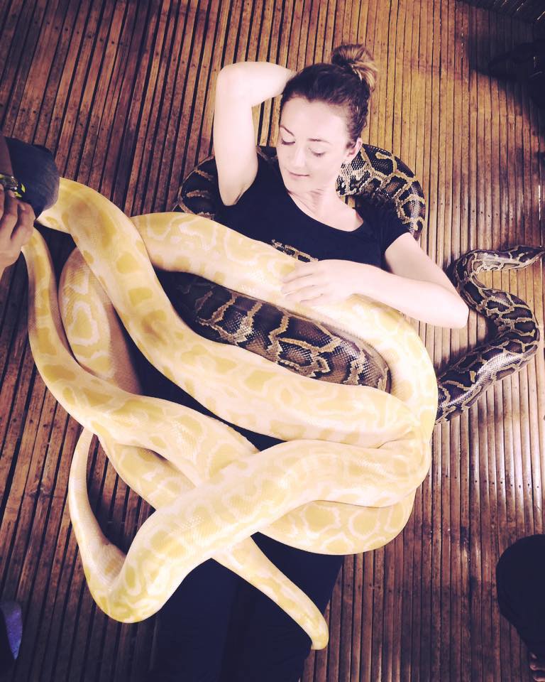 Three sweet and relaxed boas slithered over me for a slightly un-theraputic massage. I did however feel cured of my fear of snakes.