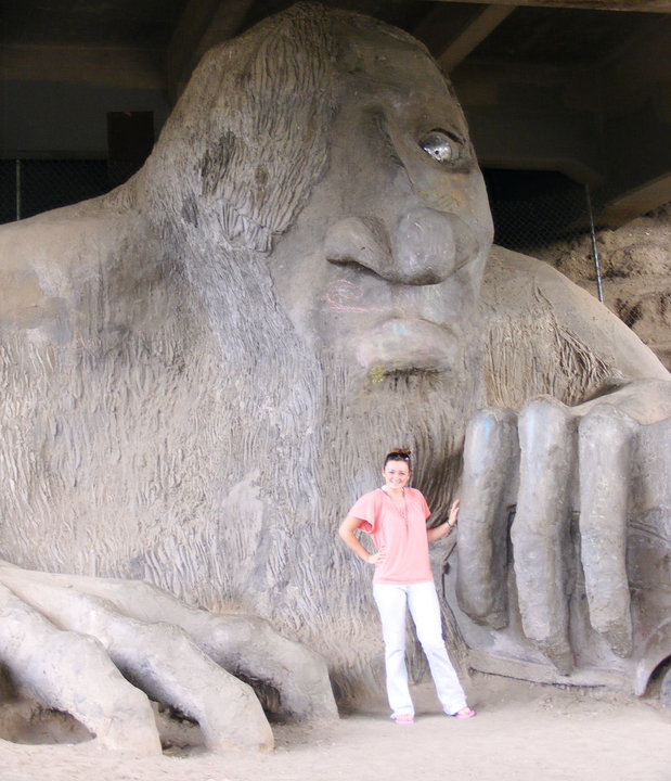 This unusual public art sculpture was built in 1990 as a deterrent for rodents, trash, and the houseless under the Aurora Avenue bridge. It’s made of steel rebar, wire, and concrete and the troll is clutching a real car, a Volkswagen Beetle.