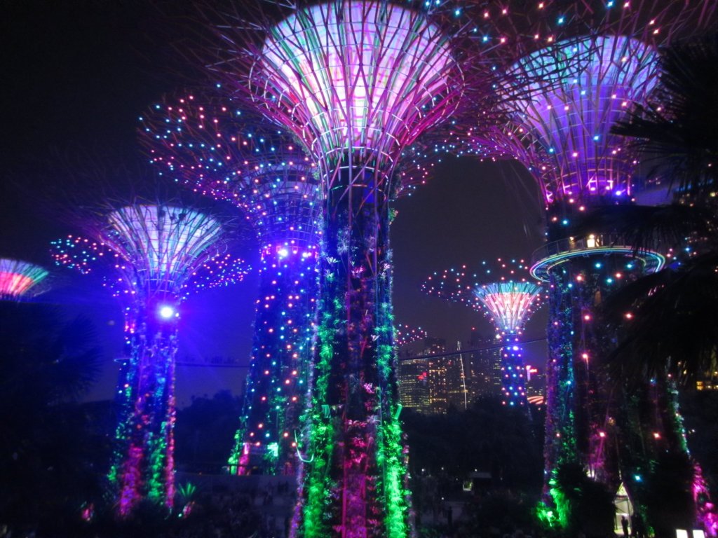 These exhilarating and creative vertical garden structures are huddled together as a cluster of 18 supertrees that display an evening light and musical show. The structures also generate solar power, act as air venting ducts, and collect rainwater for the surrounding lush gardens.