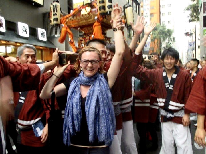 In Tokyo, Japan patrons carry a Mikoshi from the shrine, around the neighborhood participating in shouldering the shrine during a festival. They wave it wildly from side to side to “amuse” the deity (kami) inside while chanting. Mikoshi outings occur during local city festivals and events and vary by time of year.